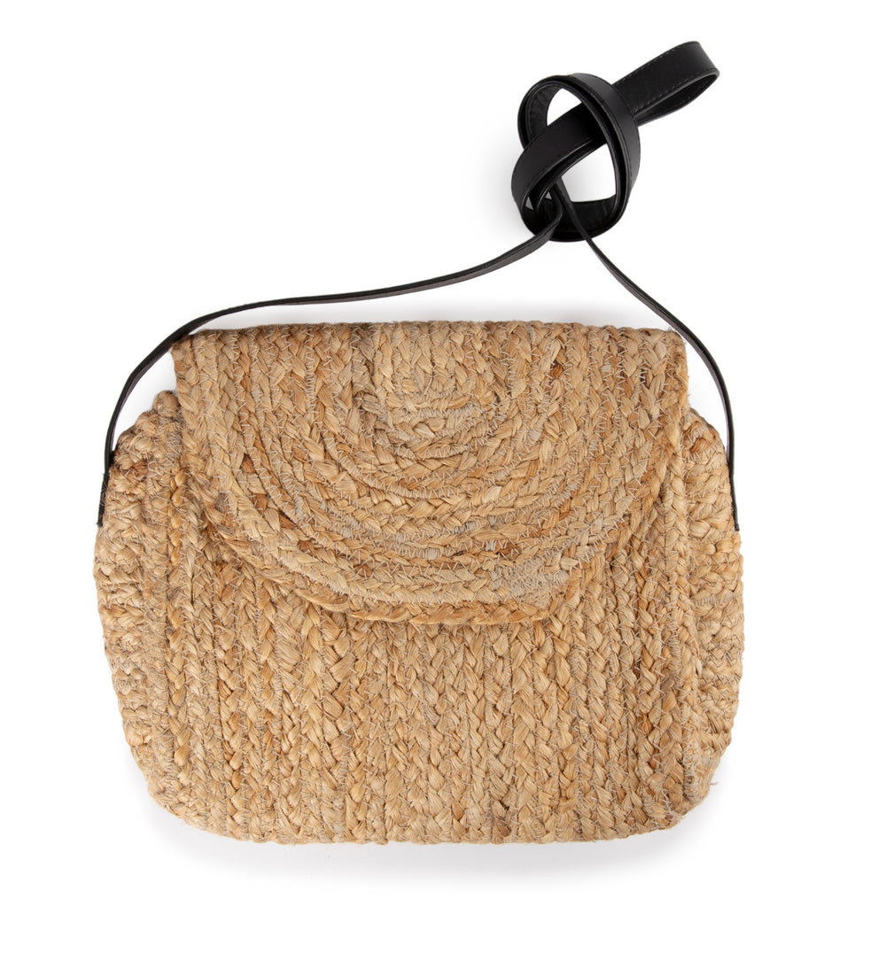 The Deena Natural Jute Crossbody Bag features a lengthy shoulder strap and a natural colour. Its interior is lined with black organic cotton and includes a zippered compartment for secure storage of your belongings. This versatile bag is perfect for storing all your day trip necessities.