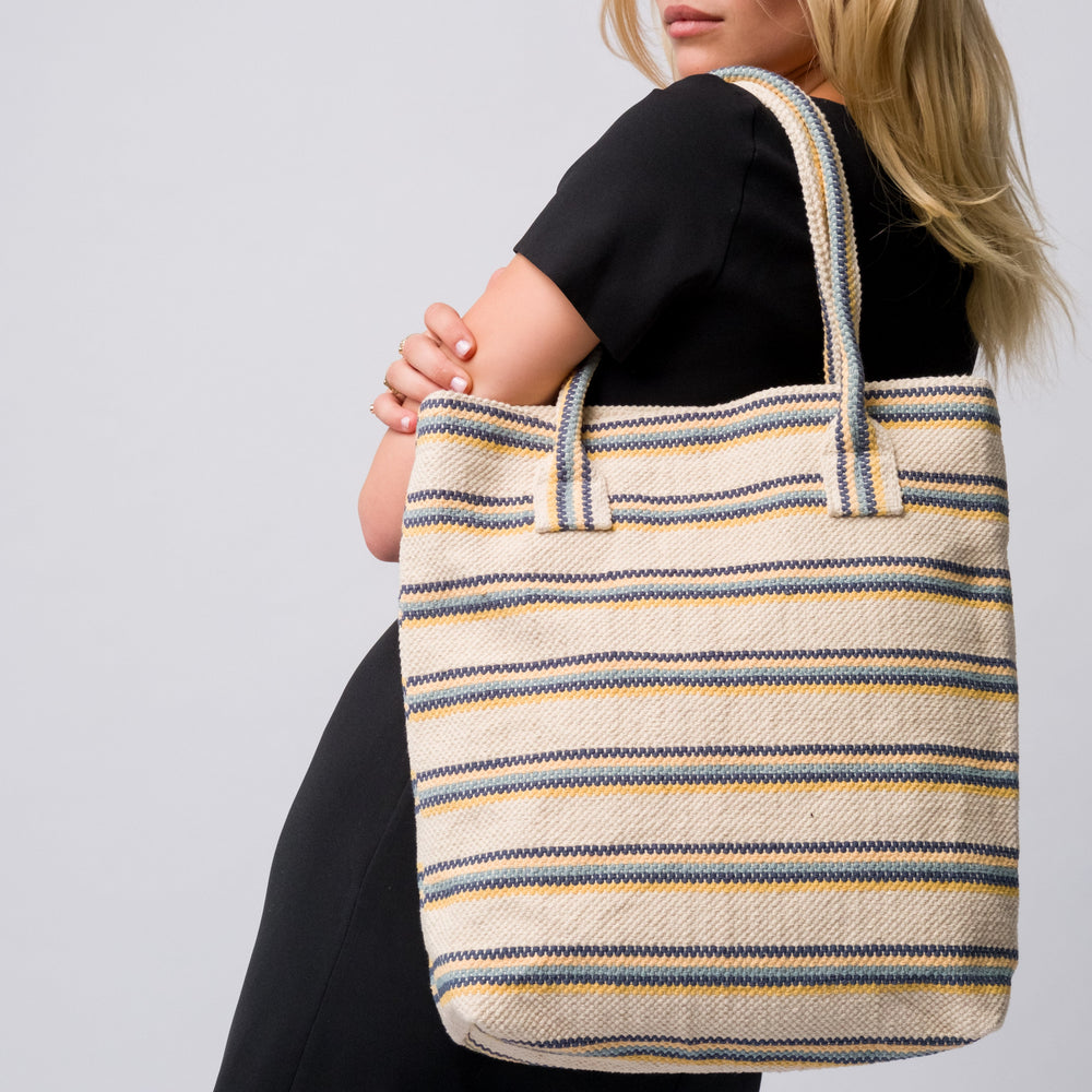Gul Baumwoll-Handweb-Einkaufstasche - Blau